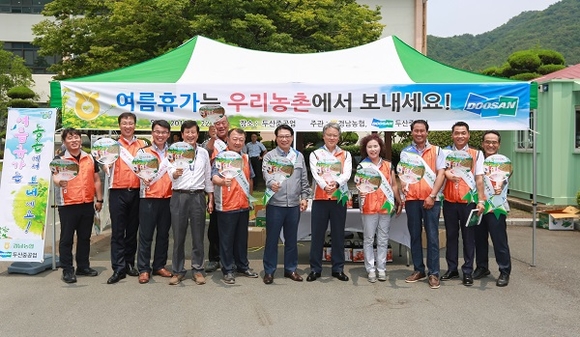 경남농협은 22일 본격적인 휴가철을 맞아 두산중공업, 경남팜스테이마을협의회, 경남명예이장협의회와 함께 두산중공업에서 '농촌에서 여름휴가보내기 캠페인'을 펼쳤다.