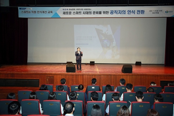 경남 창원시는 23일 공무원 900명을 대상으로 '스마트 시대 준비를 위한 공직자의 인식 전환'이라는 주제로 '스마트in 공직자 인식개선 교육'을 실시했다.