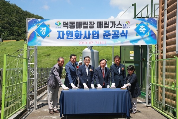 경남 창원시는 31일 마산 덕동생활폐기물매립장에서 엘에프에너지(주)와 '매립가스 자원화 및 CDM사업 준공식'을 가졌다.