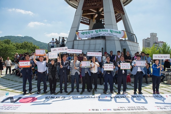 김해시소상공인연합회를 중심으로 한 시민단체와 시민 300여명은 1일 오전 김해시민의 종 앞에서 일본의 경제 보복과 일본이 우방국인 백색국가(화이트리스트)에서 한국을 제외하려는 조짐을 규탄하는 궐기대회를 개최했다.