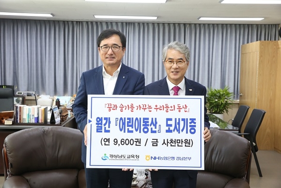 경남도교육청이 1일 NH농협은행 경남영업본부로부터 어린이 교양월간지 <어린이동산> 800부의 연간 정기구독권(4천만 원 상당)을 기증 받았다.