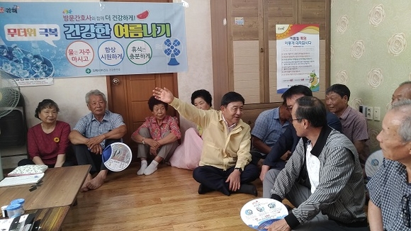 허 시장은 폭염특보가 발령된 13일 오후 진례면 무더위쉼터 중 한곳인 상촌회관을 방문해 이곳을 이용 중인 어르신들의 의견을 듣고 담당부서에 지원 강화를 지시했다.