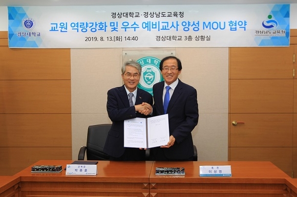 경상대학교는 13일 오후 대학본부 3층 상황실에서 경남도교육청과 교원 역량강화 및 우수 예비 교사 양성과 관련한 업무의 상호 협력을 위해 MOU를 체결했다.