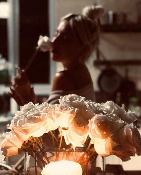 레이디가가가 하얀 장미꽃을 든 사진을 공개했다.