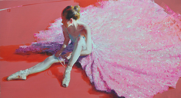 오광섭 작가는 화려한 무대 뒤에 감춰진 팽팽한 긴장과 적막이 가득한 무대 뒤편의 공간에 주목한다. 공연을 준비하는 분주한 모습과 반복되는 연습으로 휴식을 취하는 소녀들의 자유로운 움직임을 섬세하게 그려낸다. 우아하고 아름다운 무대의 이면에는 발레리나들의 피나는 노력과 눈물이 존재할 것이다. 작품을 통해서 그 이면을 보고자 하는 노력을 더한다면, 우리는 더 뜨거운 감동을 느껴 볼 수 있지 않을까