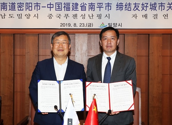 경남 밀양시는 중국 푸젠성(福建省) 난핑시(南平市)와 국제자매도시결연 협약식을 23일 밀양시청에서 가졌다.