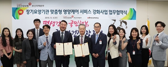 국민건강보험공단 부산지역본부는 4일 동의과학대학교와 '장기요양기관 맞춤형 영양케어 서비스 강화를 위한 업무협약'을 체결했다.