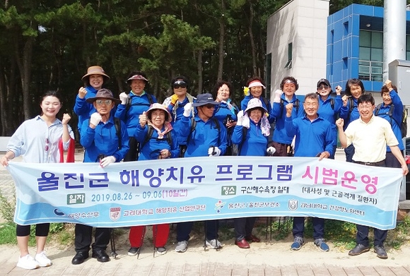 해양수산부와 고려대학교 해양치유산업연구단, 울진군, 울진군 보건소가 참여한 이번 프로그램은 선착순 모집을 통해 선발된 울진군 지역민 18명이 참여한 가운데 해양치유 자원을 활용한 치유 프로그램이 대사성 및 근골격계 질환 개선 등에 미치는 효과를 검증하기 위해 열렸다.
