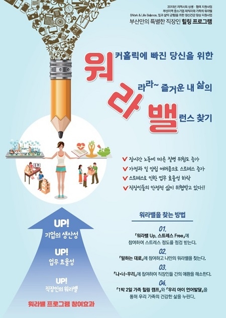지난 5월 부산시 '2019 지역사회 상생협력 지원사업'에 선정된 동명대는 6월부터 재직자와 가족의 워라밸 정신건강 향상을 위해 ▲'워라밸Up, 스트레스Free' ▲스트레스 대체교육 및 MBTI검사 등 맞춤형 심리지원 '말하는 대로' ▲언어평가 및 읽기·학습 촉진교육 '우리 아이 언어발달' ▲대인관계 및 부모-자녀관계 증진 '나·너·우리' 등을 오는 12월까지 전액 무료로 운영한다.