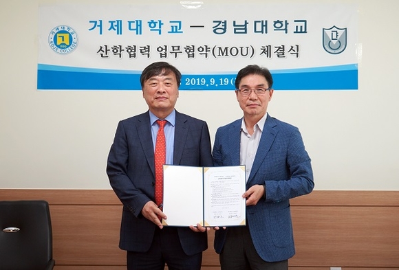 경남대학교 산학협력단은 지난 19일 거제대학교 학생회관에서 거제대 산학협력단과 상호협력 MOU를 체결했다.