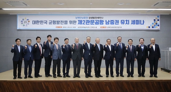경북대 이철우 지리학과 교수, 광주대 이민원 교수, 경남과학기술대학교 이웅호 교수 등은 25일 전남 순천만 국가정원에서 열린 '대한민국 균형발전을 위한 제2관문공항 남중권 유치 세미나'에서 이같이 주장했다.