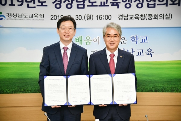 경남도교육청과 경남도는 30일 도교육청 중회의실에서 박종훈 교육감과 김경수 도지사가 참석한 가운데 2019년도 경상남도교육행정협의회 정기회의를 개최했다.