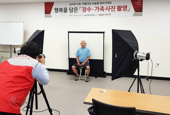 BNK경남은행은 지난 2일 노인의 날을 맞아 '장수사진 촬영 봉사활동'을 펼쳤다.