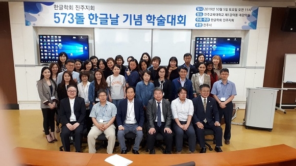 경상대학교 국어문화원과 한글학회 진주지회는 573돌 한글날(10월 9일)을 맞아 지난 5일 진주교육대학교 제1강의동 대강의실에서 학술대회를 개최했다. 이번 행사는 진주시에서 후원했다.