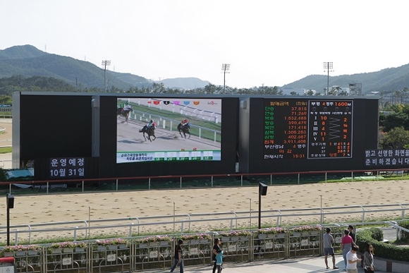 약 25억원의 예산이 투입된 멀티비전은 올 5월에 본격적인 공사를 시작해 약 6개월간의 공사기간을 거쳐 준공됐다. 3296 x 480의 초고해상도 화질에 화면크기는 41.2m x 6.0m로 부산 제일의 크기와 화질을 자랑한다. 경마중계, 배당률, 순위 게시대를 통합해 보여주며 기존 전광판에 비해 더욱 높아진 사양을 갖추고 있다. 또한 경마 이외의 다양한 콘텐츠, 광고 등을 적용하고 8.1 채널 디지털사운드를 운영한다.