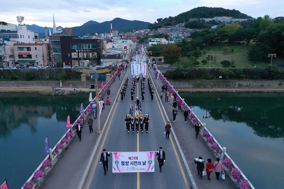 경남 밀양시는 17일 삼문동 야외공연장 일원에서 시민 1만 5천여 명이 참여한 가운데 '제24회 밀양 시민의 날'을 성황리에 개최했다.