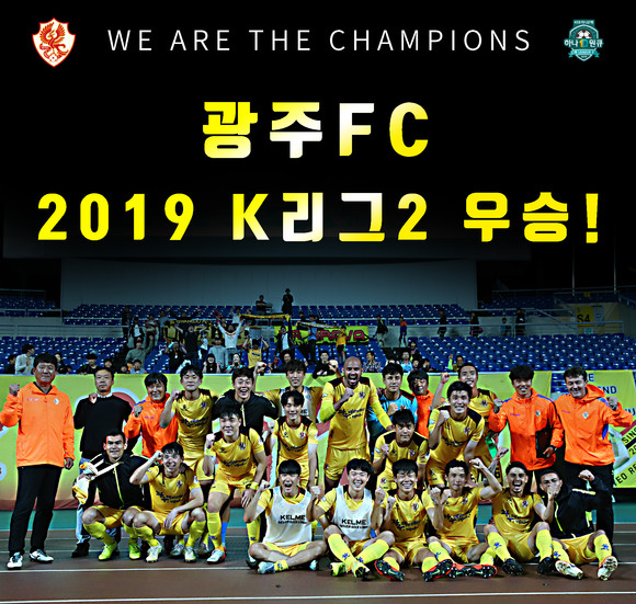 프로축구 광주FC가 K리그2 2019 조기 우승을 달성했다. 광주는 창단 첫 우승이라는 새로운 역사와 함께 1부리그 직행 열차에 오르게됐다.
