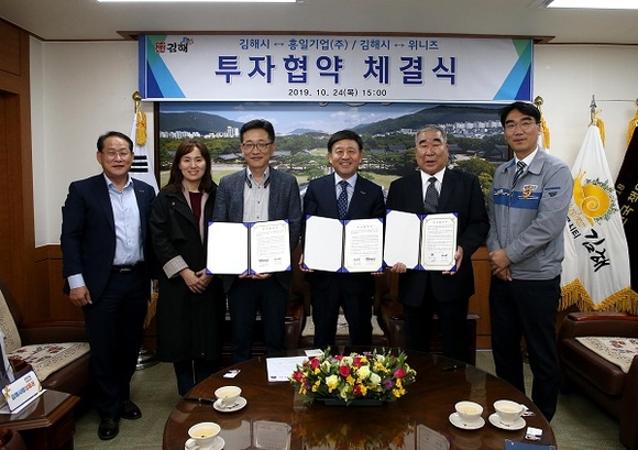 시는 24일 오후 시청에서 투자기업인 흥일기업(주), 위니즈와 374억원 규모의 투자협약을 체결했다고 밝혔다.