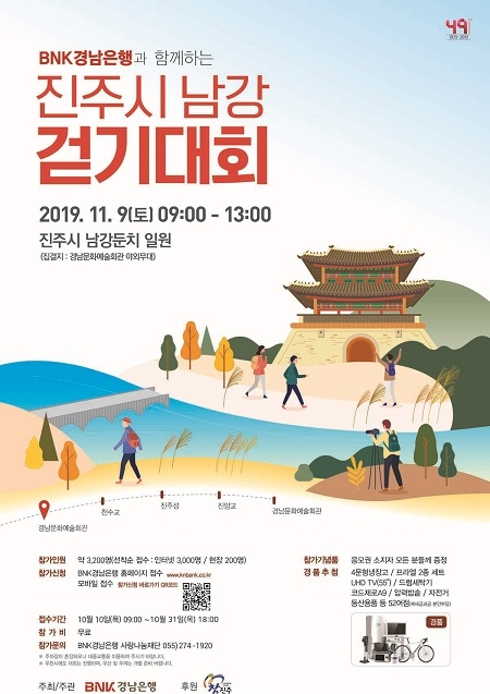 BNK경남은행이 내달 9일 '2019 진주시 남강 걷기대회'를 개최한다.