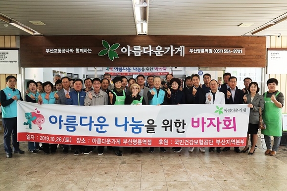 국민건강보험공단 부산지역본부는 26일 아름다운가게 부산명륜역점에서 지역주민들과 함께하는 '아름다운 나눔을 위한 바자회'를 개최했다.