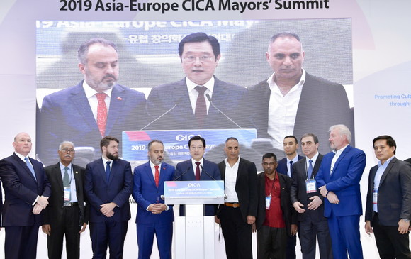 이용섭 광주광역시장을 비롯해 벨기에 브뤼셀, 영국 웨스트 오브 잉글랜드, 핀란드 투르크, 말레이시아 페낭 등 아시아-유럽 14개 도시 대표들은 29일 국립아시아문화전당에서 열린 ‘2019 아시아-유럽 창의혁신도시 연대 시장회의’ 폐막식에서 참석해 ‘광주선언문’을 채택했다.