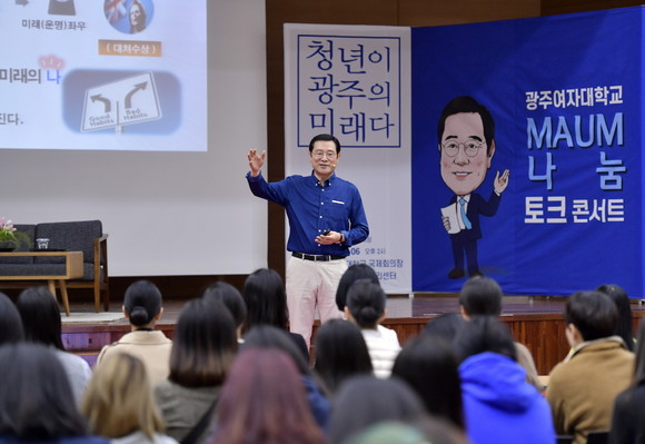 이용섭 광주광역시장은 6일 광주여자대학교 국제회의장에서 재학생 300여 명을 대상으로 ‘청년이 광주의 미래다’라는 주제의 특강을 갖고 “인공지능 중심도시, 노사상생 산업평화도시, 국제비즈니스 투자환경 조성 등으로 4차 산업혁명을 선도하고 미래 주도형 인재 양성에 앞장서 가겠다”며 이같이 말했다.