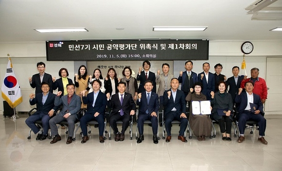 경남 김해시는 5일 시청 소회의실에서 민선7기 시민 공약평가단 위촉식과 제1차 회의를 가졌다.