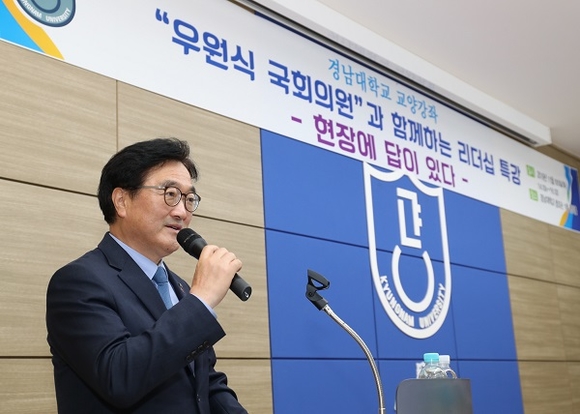 경남대학교는 지난 5일 창조관 평화홀에서 '우원식 국회의원과 함께하는 리더십 특강'을 개최했다.