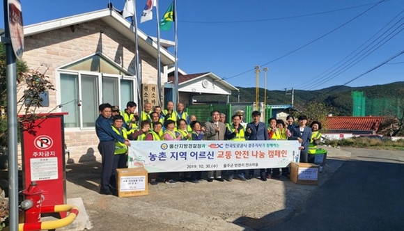 한국도로공사 경주지사와 울산지방경찰청은 지난달 30일 울주군 반천리 천소마을회관에서 마을이장 및 주민들이 참석한 가운데 교통취약계층인 노인들의 교통사고 예방을 위한 교통‧안전 나눔 캠페인을 전개했다.