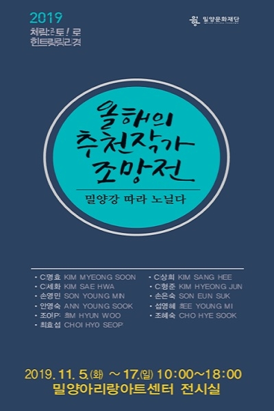밀양문화재단이 지난 5일부터 오는 17일까지 기획초대전시 '올해의 추천작가 조망전: 밀양강 따라 노닐다'를 밀양아리랑아트센터 전시실에서 개최하고 관람객을 맞이하고 있다.
