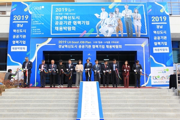 개회식은 참석자 소개, 취업 관련 희망 영상 메시지 상영, 국민의례, 개회사(LH 사장), 축사(진주시장), 환영사(경상대 총장), 오색끈 자르기 등의 순으로 25분간 진행됐다. 개회식 후 주요 내빈들은 채용박람회 행사장을 관람하고 업계 관계자들과 면담을 가졌다.