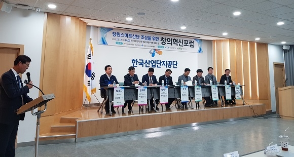 한국산업단지공단 경남지역본부는 경남창원스마트산단사업단, (사)창원국가산업단지경영자협의회와 12일 본부 6층 융합의 장에서 창원산단 입주기업을 대상으로 '경남창원스마트산단 조성'을 주제로 창의혁신포럼을 열었다.