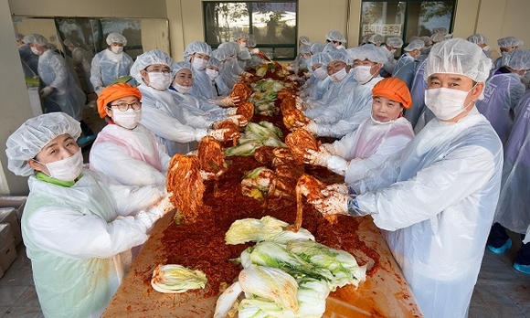 넥센타이어는 지난 12일 사내 봉사동아리인 '희망나누미'를 비롯한 임직원들이 양산 공설 운동장에 모여 1천여 포기의 김장 김치를 담구었다.