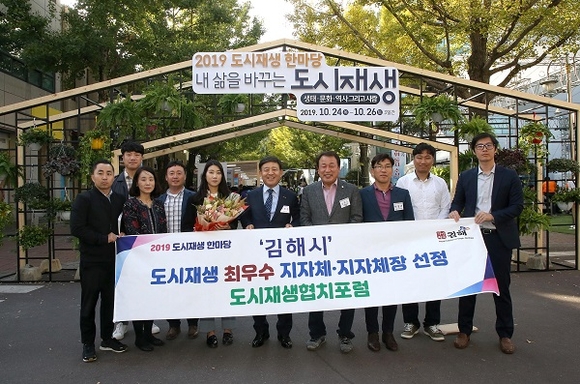 허성곤 김해시장은 지난달 25일 전남 순천에서 열린 2019 도시재생 한마당에서 개최된 제5차 도시재생 광역협치포럼에서 중앙부처와 지자체, 공기업, 연구기관, 중간지원조직, 시민단체 등이 참여한 가운데 이 같은 내용을 건의했으며 이 행사에서 김해시와 허 시장은 각각 최우수 지자체·단체장상을 수상했다.
