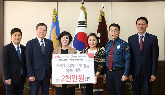 BNK경남은행은 지난 19일 경남지방경찰청에 '사회적 약자 보호 활동 물품'을 기탁했다.