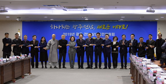 광주광역시와 전라남도는 25일 광주광역시청에서 이용섭 광주광역시장과 김영록 전라남도지사, 민간 자문위원 등 50여 명이 참석한 가운데 광주·전남 상생발전위원회를 가졌다.