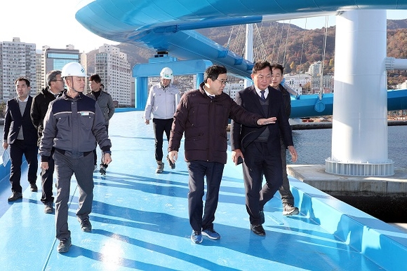 허성무 창원시장이 지난 29일 '마산해양신도시 개발 방향 수립'과 관련, 시민 모두가 누릴 수 있는 공간으로 조성하기 위해 마산해양신도시건설 현장을 직접 방문해 사업 추진 상황을 점검했다.