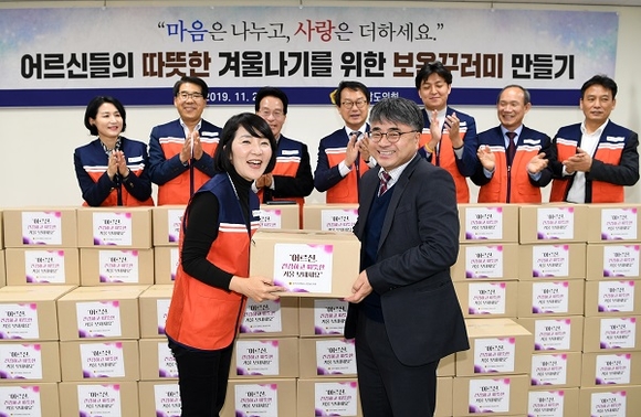 이날 행사는 도의원 등 100여명의 참석자들이 홀로 사시는 어르신들을 위해 내의, 찜질팩, 장갑 등 다양한 방한용품으로 구성된 보온꾸러미를 제작했다. 보온꾸러미는 경남도 자원봉사센터를 통해 어르신 200여 가구에 전달돼 어르신들의 겨울나기에 힘이 될 전망이다.