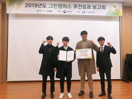 경상대학교는 지난 29일 서울 여행박사빌딩에서 열린 '2019년 그린캠퍼스 추진성과 보고회'에서 경상대 '위더스(With-Us)'가 우수상을 수상했다고 3일 밝혔다.