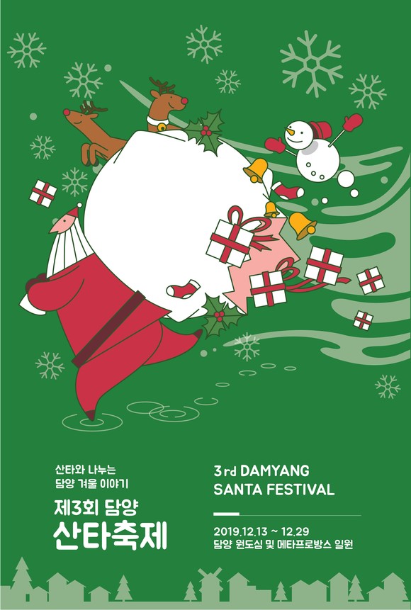 사계절 언제가도 좋은 여행자의 도시 담양에서 오는 13일부터 29일까지 담양읍 원도심과 담양속의 작은 유럽마을 메타프로방스 일원을 중심으로 ‘산타와 나누는 겨울이야기’, 제3회 담양산타축제가 개최된다.