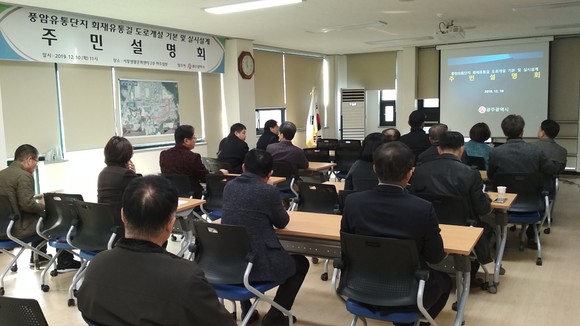 주민설명회는 인근 주민 20여명과 황현택 시의원, 시청 및 서구청 업무 담당자들이 참여한 가운데 풍암유통단지 회재유통길 도로개설 사업내용을 설명하고 주민들의 의견을 청취하는 시간을 가졌다.