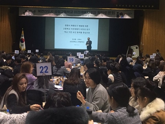 토론회에서는 경남대학교 산학협력단 김성열 책임연구원이 '창원시 학령인구 변화에 따른 고등학교 이전재배치 타당성 연구' 결과를 발표했다. 연구 결과 이전재배치 요인으로 ▲학령인구 감소 ▲학교 시설 노후화 ▲학교구성원들의 이전 동의 정도 ▲학교 밀집도 ▲학교 이전으로 인한 지역 주민들의 상대적 박탈감 등이 나왔다.