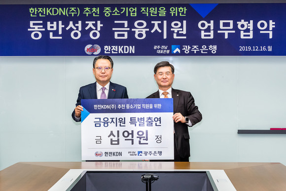광주은행(은행장 송종욱)은 16일 광주은행 본점에서 한전KDN(주)와 지역 중소기업 직원들의 금융지원을 위한 업무협약을 체결했다고 밝혔다.