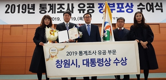경남 창원시는 19일 통계청 주관으로 대전 정부청사에서 열린 '2019 통계조사 업무유공 포상 수여식'에서 기초 지방자치단체 부분 최고상인 대통령상을 수상했다고 밝혔다.