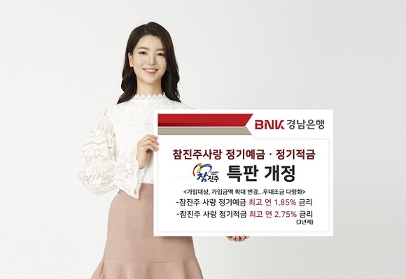 BNK경남은행은 '참진주사랑 정기예금'과 '참진주사랑 정기적금'을 개정했다고 23일 밝혔다.