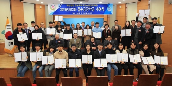 재단법인 경상대학교 김순금 장학재단은 23일 법과대학 김순금홀에서 2019년도 장학금 수여식을 개최했다.