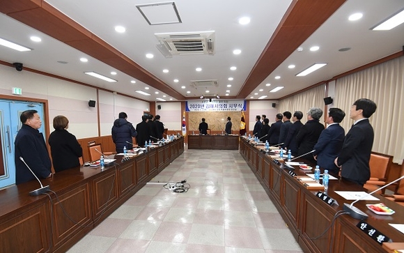 김해시의회는 2일 특별위원회 회의실에서 의원들과 직원들이 참석한 가운데 경자년 새해 힘찬 출발을 알리는 '2020년 시무식'을 갖고 새해 업무를 시작했다.