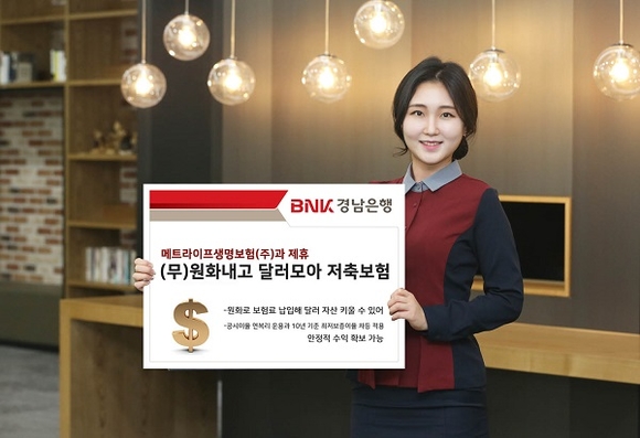 BNK경남은행은 메트라이프생명보험㈜과 제휴해 '(무)원화내고 달러모아 저축보험'을 판매하고 있다고 7일 밝혔다.