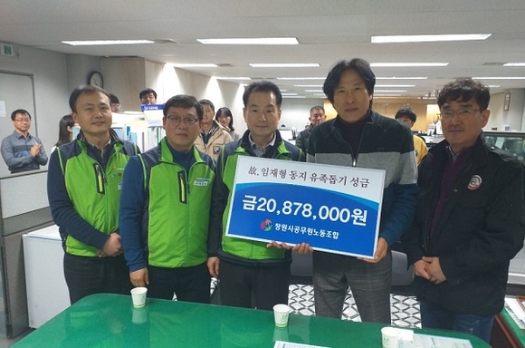 창원시공무원노동조합은 이 같은 사실을 파악하고 즉시 3600명의 조합원들과 성금 모금 운동을 전개해 2087만원을 모아 유족에게 전달했다.