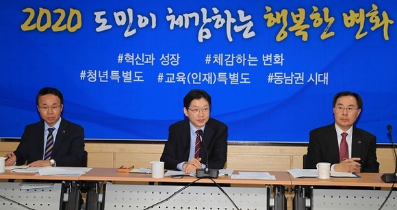 김 지사는 7일 도청 도정회의실에서 2020년도 첫 간부회의로 치러진 '월간전략회의'에서 “국정운영방향에 기초하지만 세부적으로 들어가면 현장, 각 시·군마다 사정이 다르기에 중앙부처의 지침이 100% 다 맞다고 보기는 어렵다”면서 “우리 현장에 맞는지를 도 차원에서 시군과 함께 반드시 점검하고 적극적으로 개선해야 한다”고 이같이 주문했다.